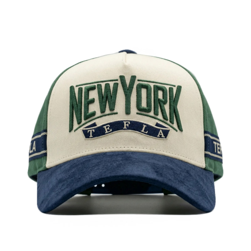 Le panneau avant présente un logo audacieux brodé en relief 3D « New York NY » , offrant une forte profondeur, texture et impact visuel. Les coutures haute densité garantissent une définition nette, une excellente durabilité et une tenue longue durée, idéales pour les programmes de vente chaude aux États-Unis, la distribution au détail et l'utilisation promotionnelle.
