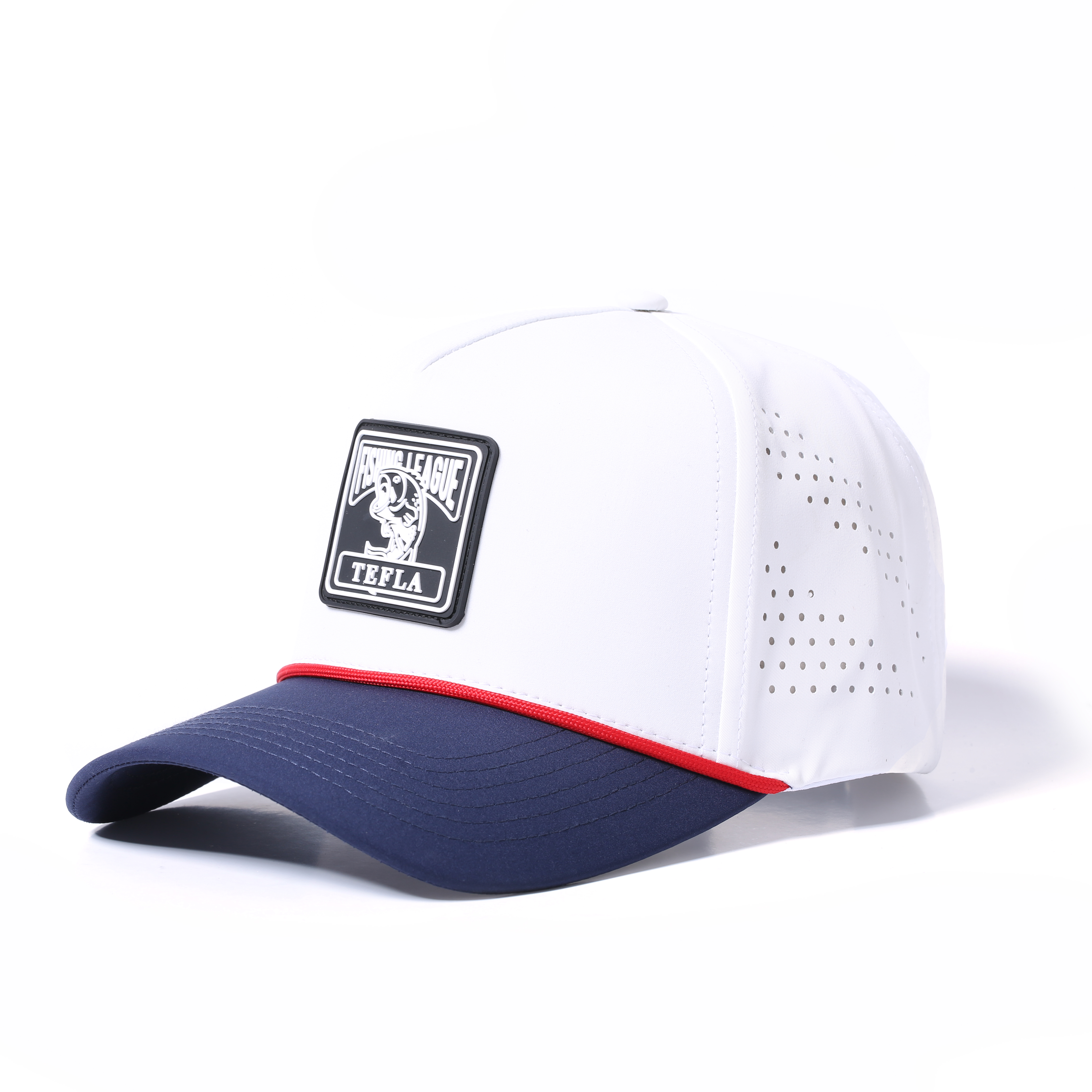 Cette casquette de golf à 5 panneaux comporte un patch en caoutchouc PVC personnalisé, offrant une solution de logo moderne, audacieuse et très durable. Le patch en caoutchouc offre une excellente clarté dimensionnelle, une résistance aux intempéries et des performances durables, ce qui le rend idéal pour les marques de golf, les vêtements de sport de plein air et une utilisation promotionnelle haut de gamme.